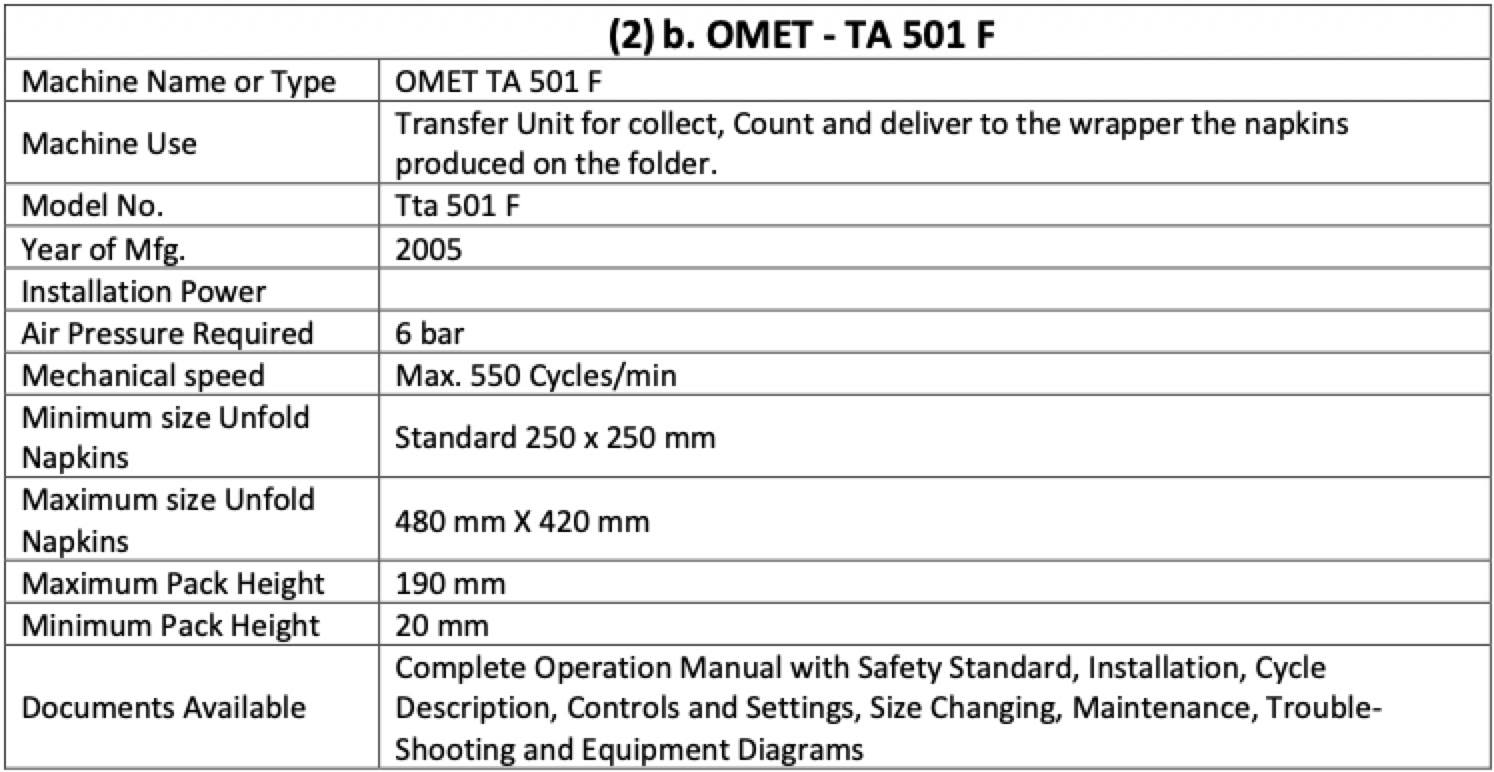 SM4050 NAPKIN LINE - OMET